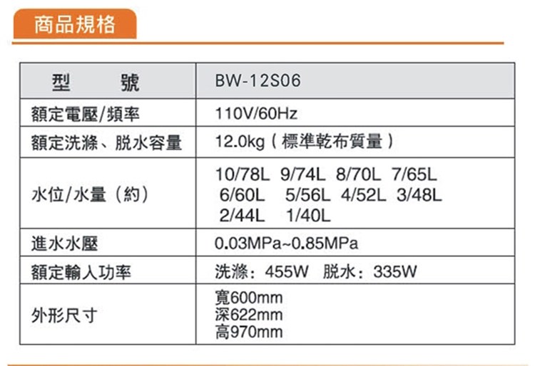 Kolin歌林12公斤單槽定頻直立式洗衣機 BW-12S06~含基本安裝+舊機回收