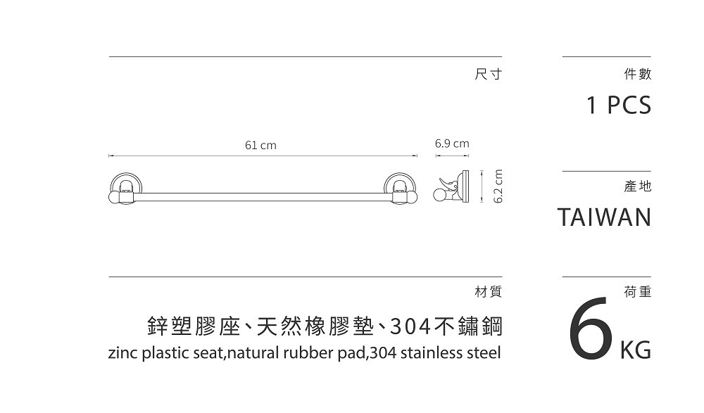 FAmILyLIFE 生活 304不銹鋼免釘壁掛橫桿 80cm 銀色 1個
