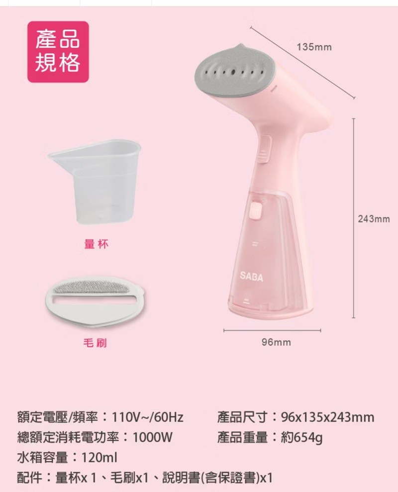 SABA手持式蒸氣掛燙機 SA-HIH03