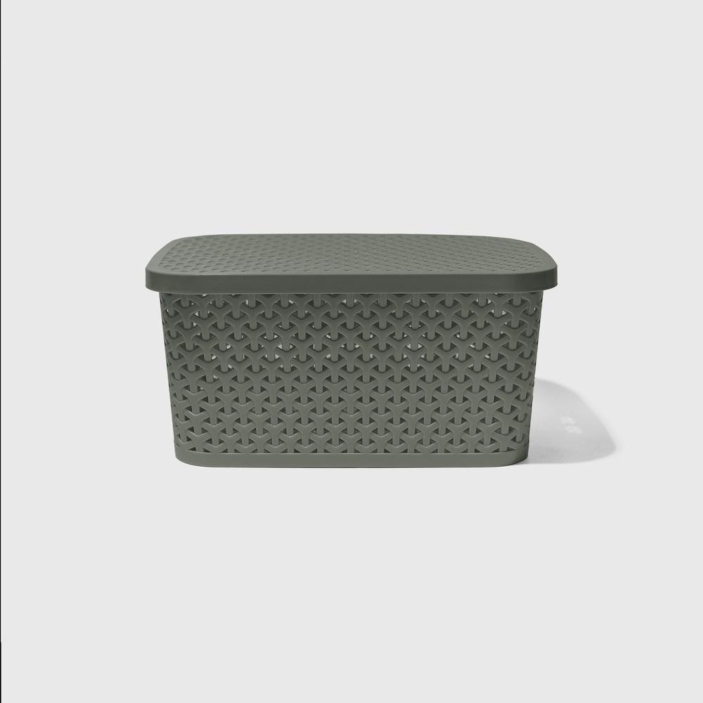 GINII北歐編織收納籃 S附蓋 6L 莫蘭迪綠
