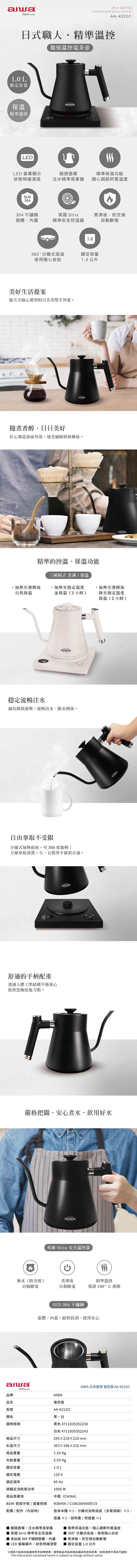 AIWA愛華 1.0L 鵝頸溫控手沖電茶壼 AA-K21GC
