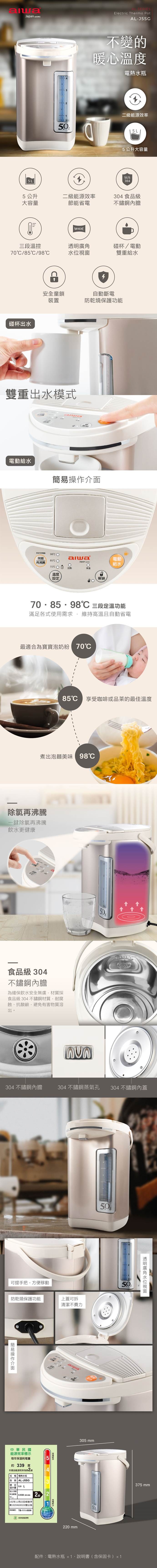 點我下載【AIWA 愛華】三段定溫電熱水瓶 AL-J5SG (二級能效/碰杯電動雙重給水)