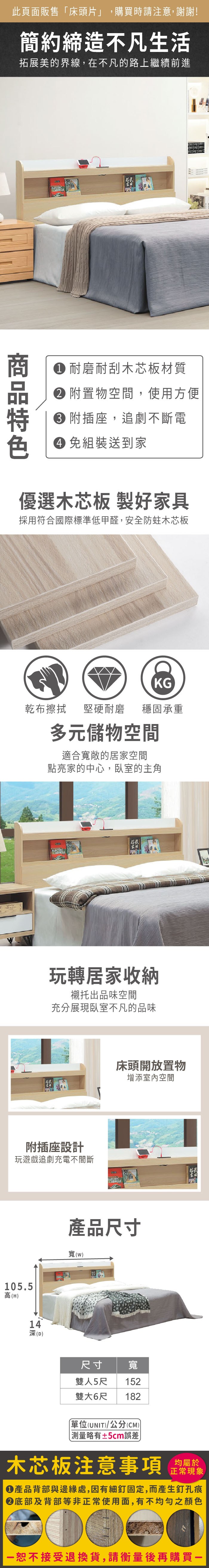 源氏木語西雅圖橡木原木色斜靠雙人5尺150x190夜燈低舖床架 Y90B28 (H014324397)