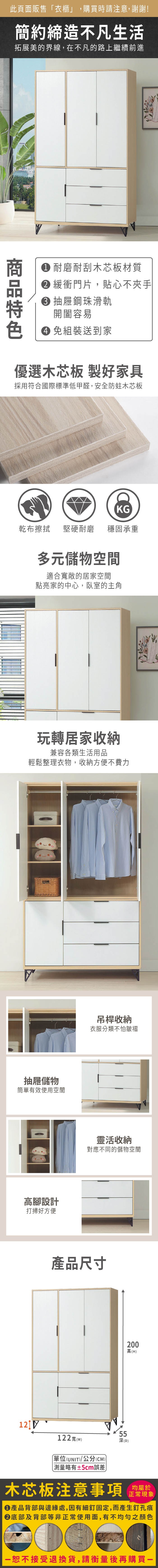 【唯熙傢俱】寶拉雙色4尺衣櫃