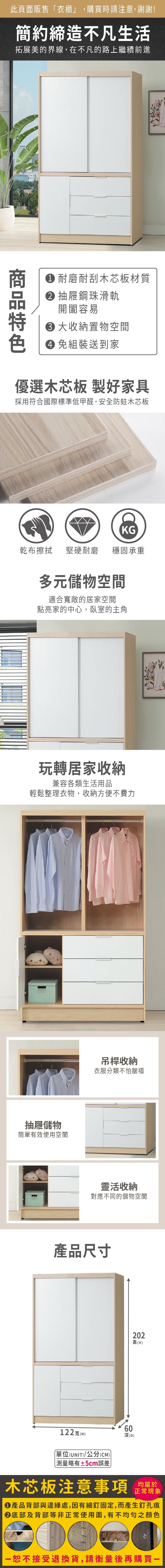 直人木業-TESS淺橡極簡風四抽滑門衣櫃120公分