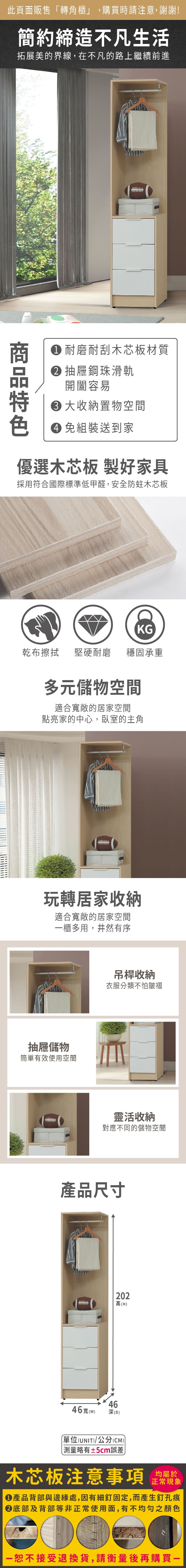 Boden-美娜1.3尺開放式二抽轉角衣櫃/衣櫃/牆角衣櫃-40x56x202cm