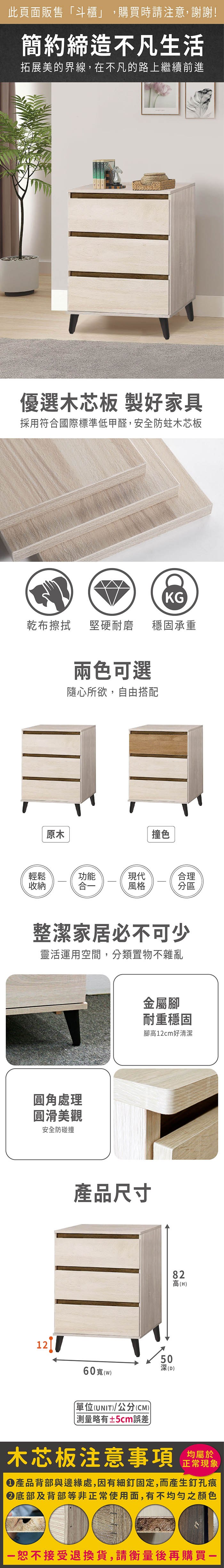 點我下載ASSARI-現黛三斗櫃(寬60x深50x高82cm)撞色