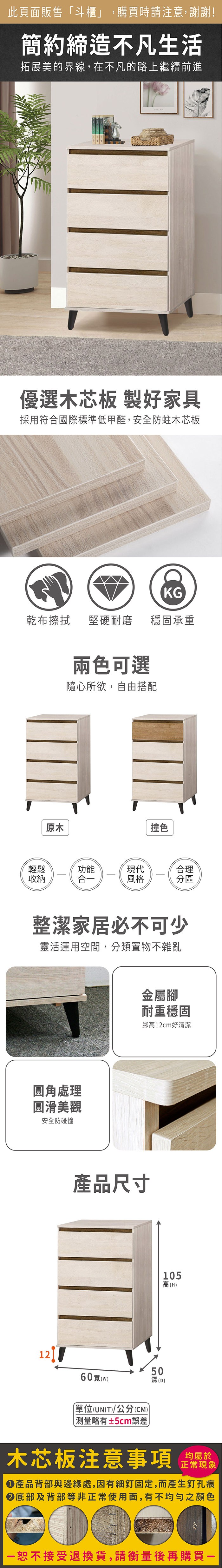 ASSARI-現黛四斗櫃(寬60x深50x高105cm)原木色