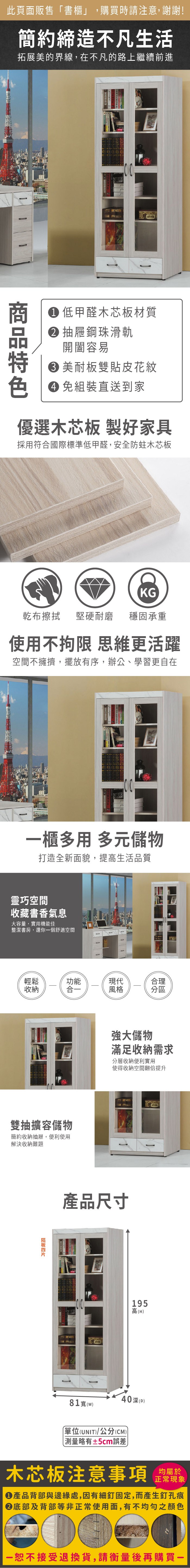 文創集 沐夏卡2.8尺二門下二抽書櫃-84x39x181cm免組
