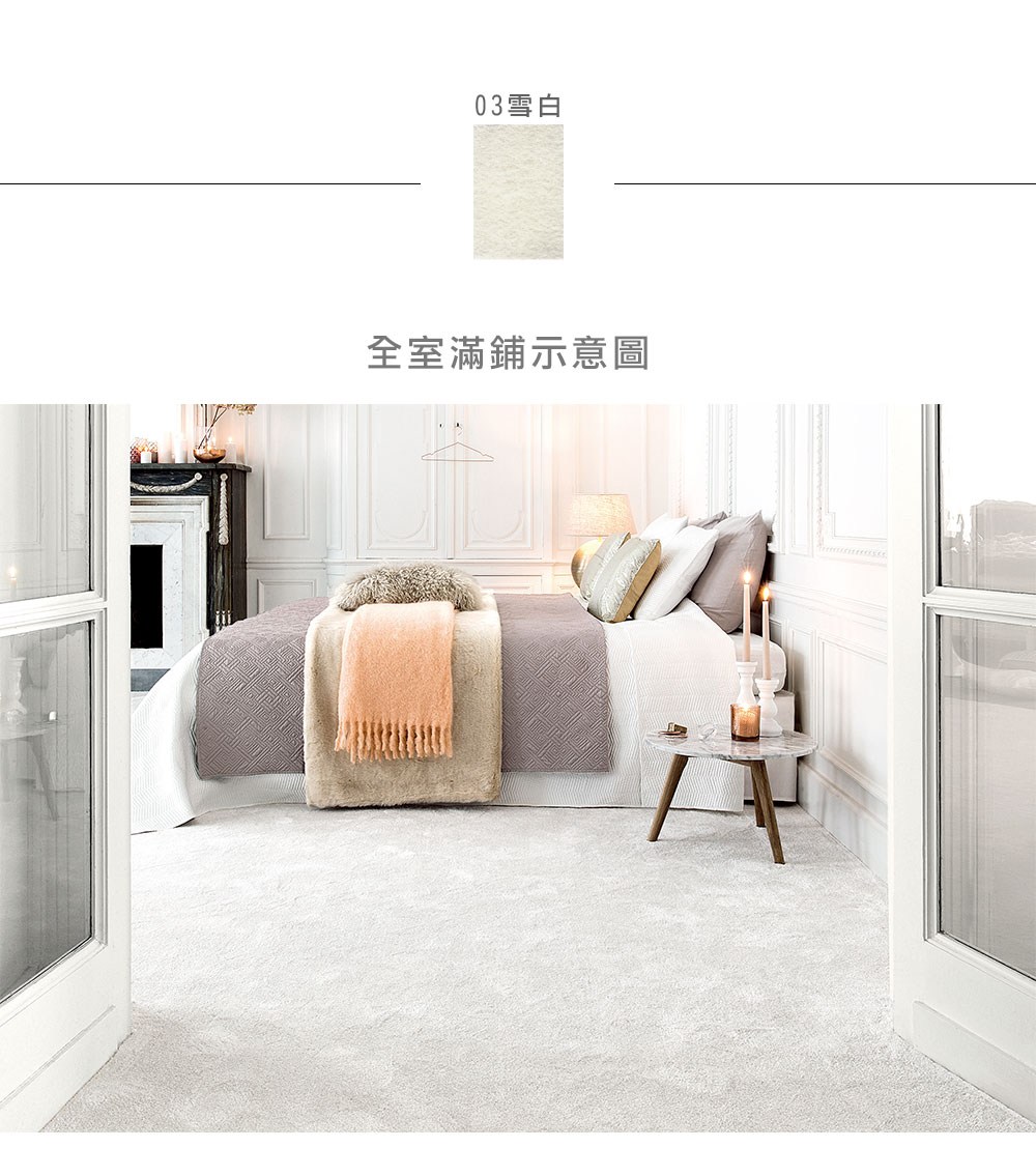 比利時 頂級奢華長毛地毯 03雪白 200x290cm