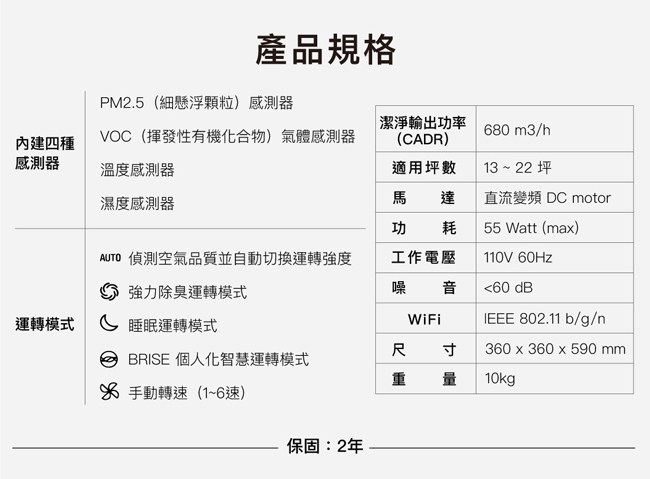 BRISE AI智能全方位空氣清淨機 C600
