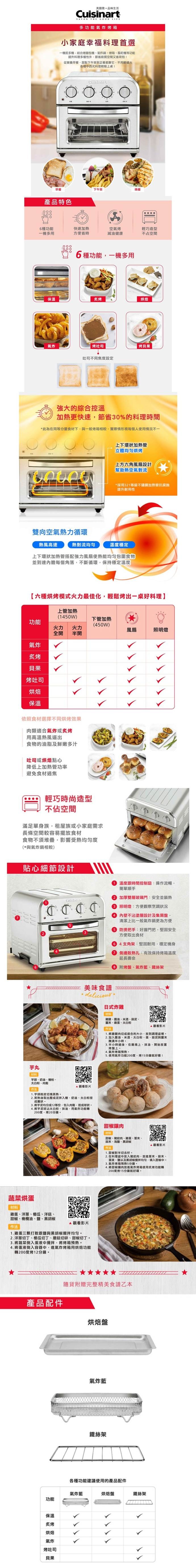 【Cuisinart 美膳雅】17L多功能氣炸烤箱 (TOA-60TW)