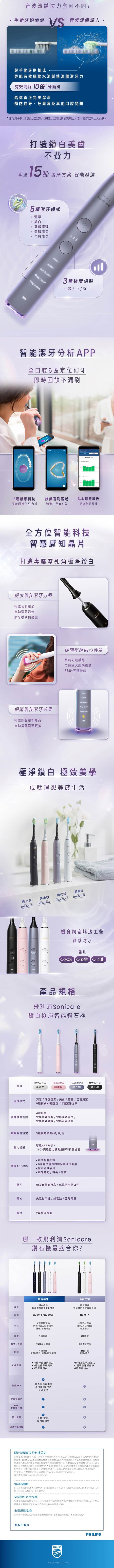 飛利浦 Sonicare煥白閃耀智能鑽石音波電動牙刷-黑鑽(HX9912/17)*[送智能亮白六刷]