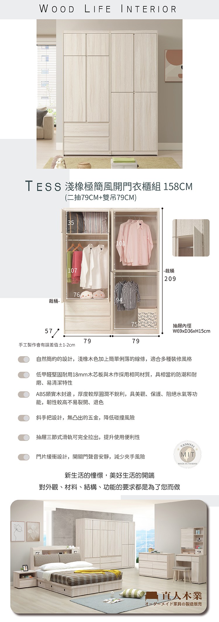 直人木業-TESS淺橡極簡風二抽開門衣櫃79公分