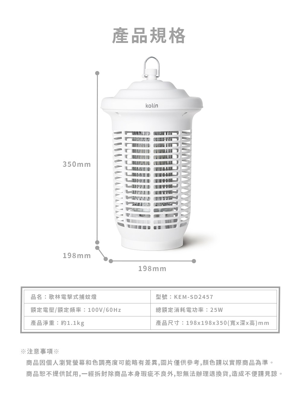 歌林 光感應電擊式捕蚊燈 KEM-SD2457