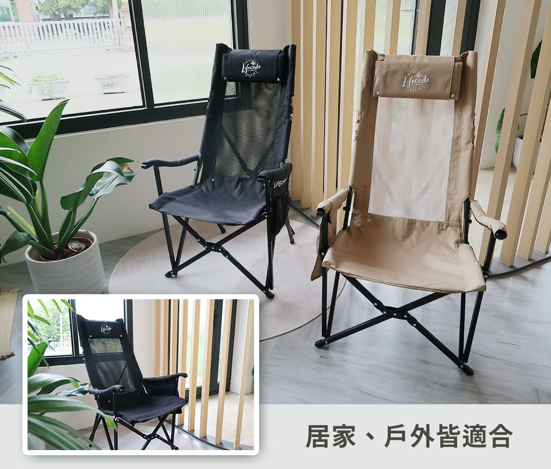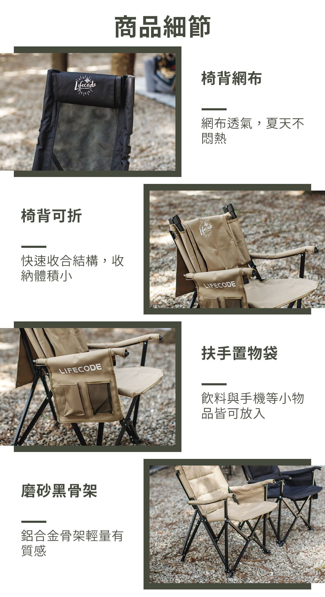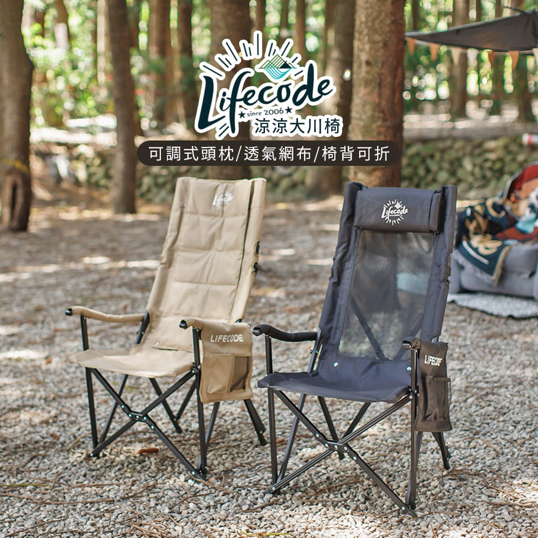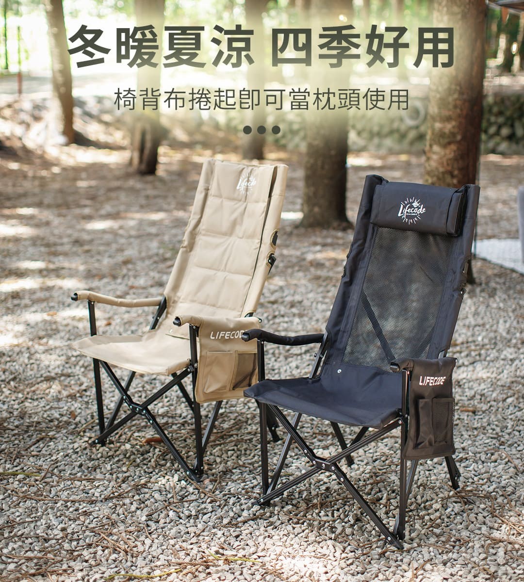 【LIFECODE】《涼涼》冬夏兩用鋁合金大川椅/折疊椅(透氣椅背/椅背可內折/附置物袋)-沙色/黑色 13020207/8