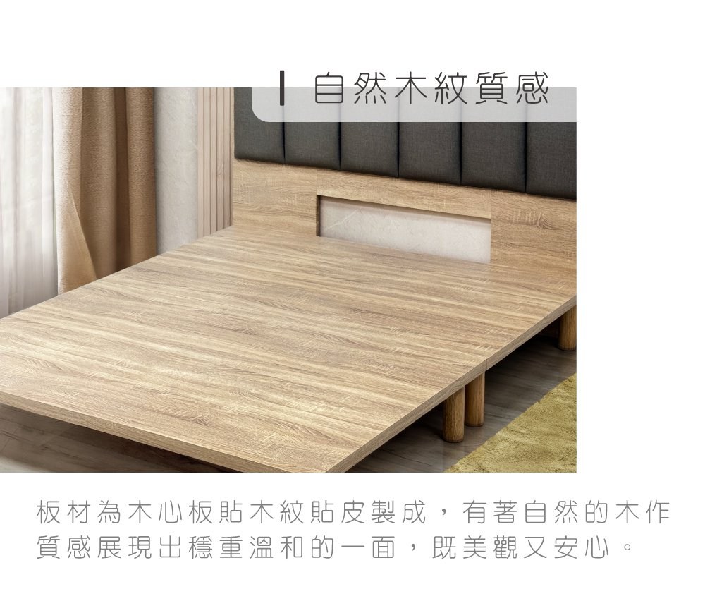hoi!源氏木語冰河橡木原木色雙人加大180x190懸浮床架 Y00B150