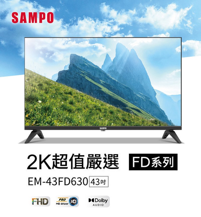SAMPO聲寶43吋 Full HD LED液晶顯示器/無視訊盒 EM-43FD630~含桌上型拆箱定位+舊機回收