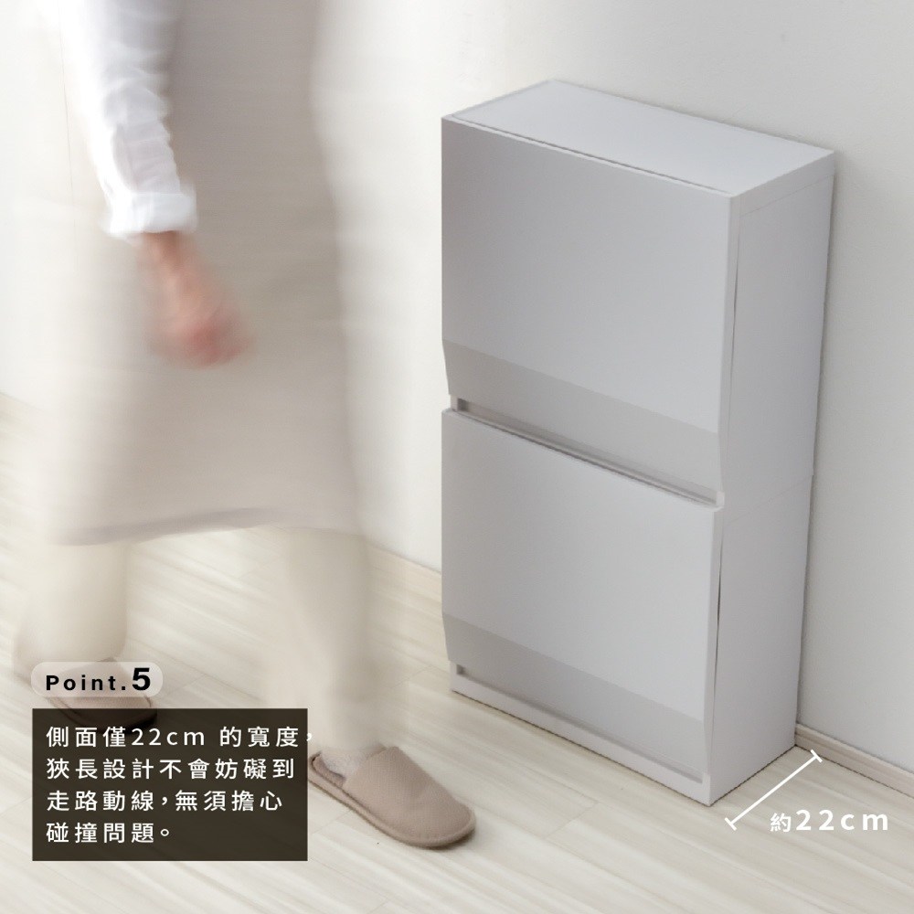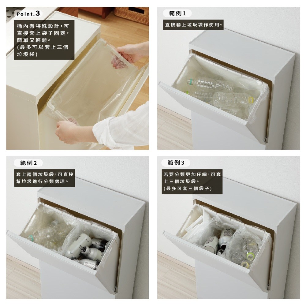 【日本岩谷Iwatani】長型可分類掀蓋式垃圾桶(附輪)-36L 白