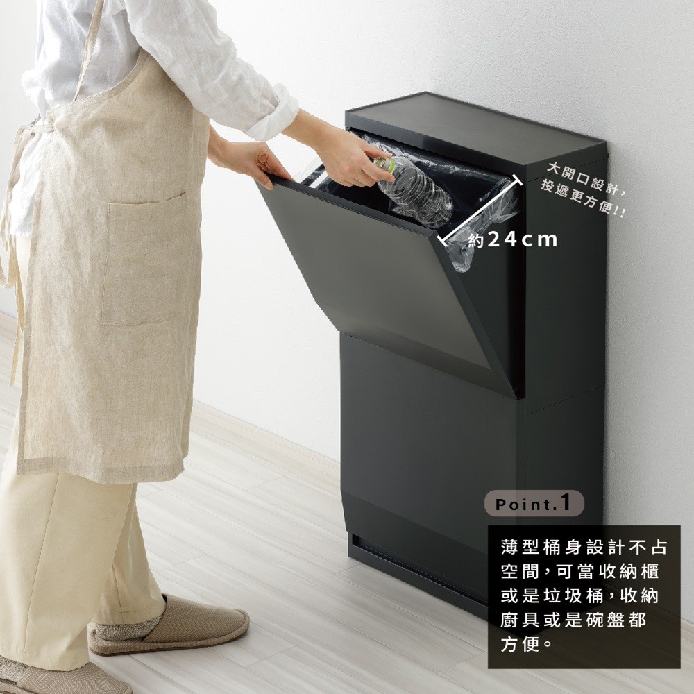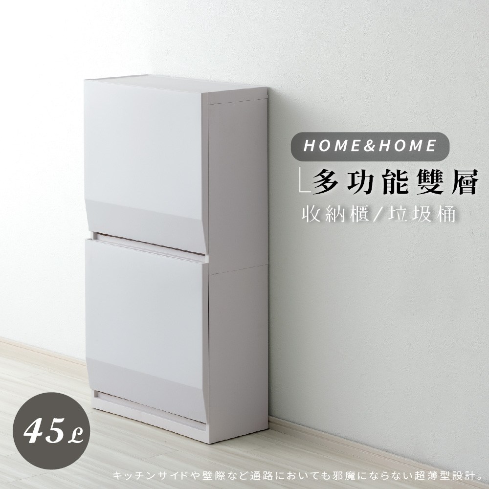 H&H系列 多功能雙層收納櫃垃圾桶 45L黑色