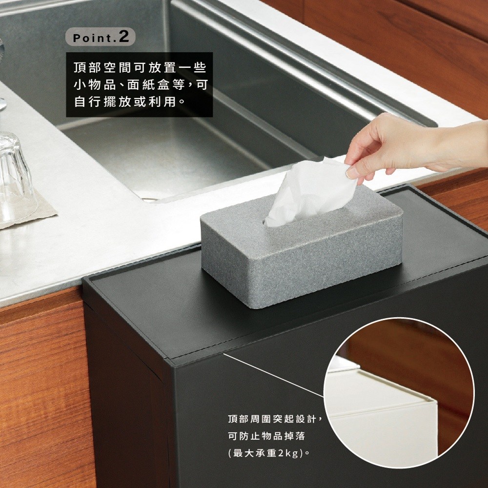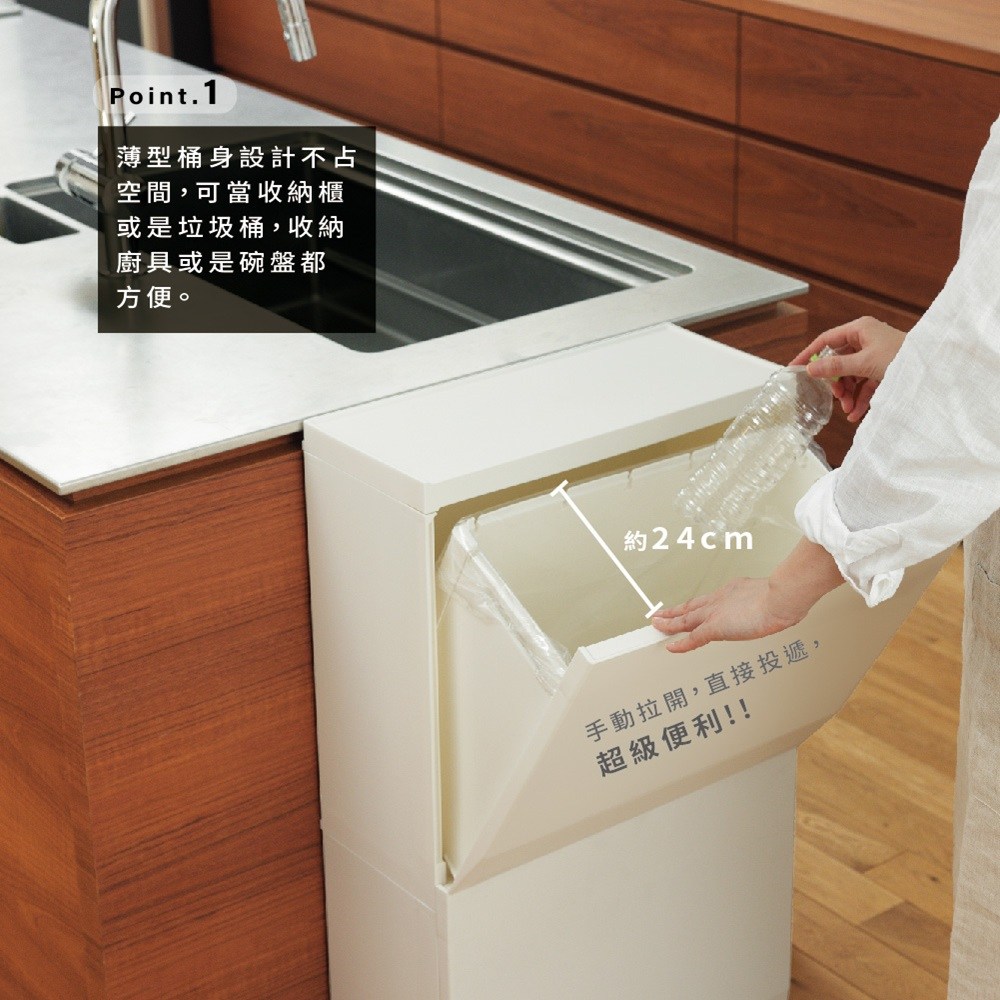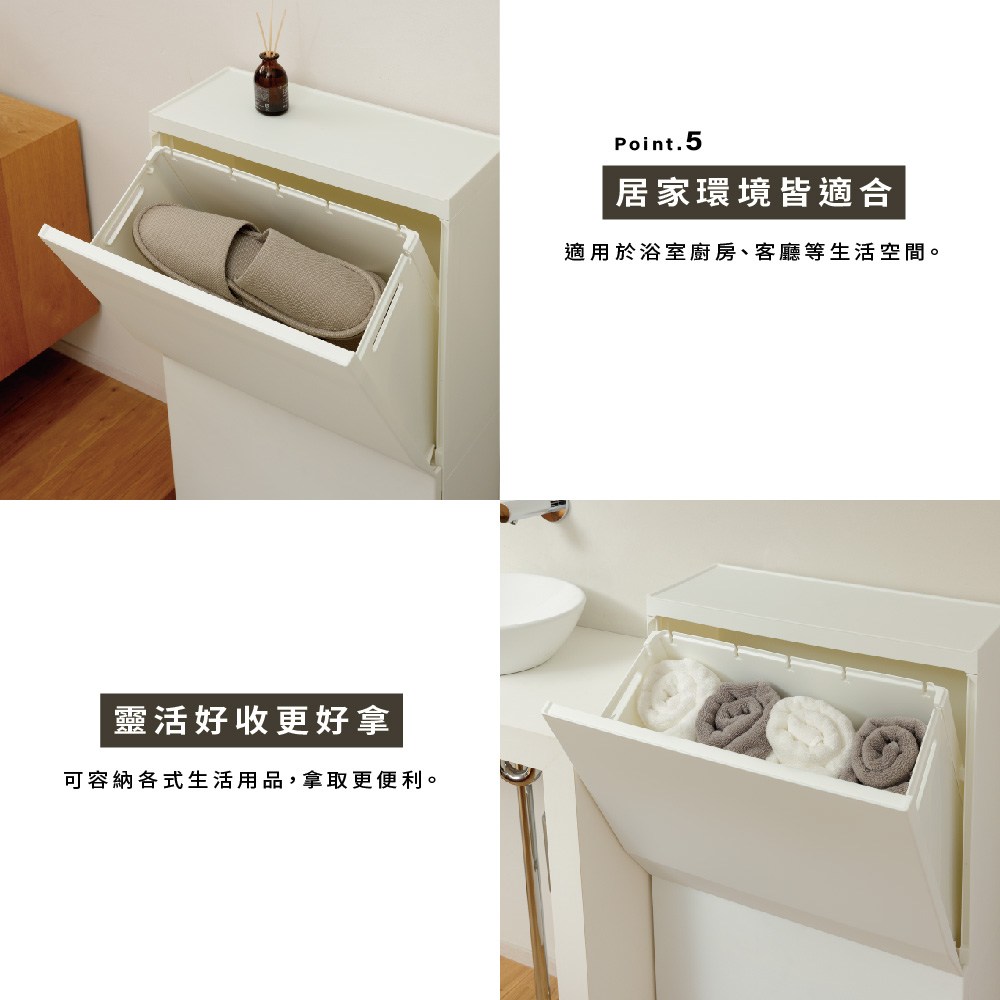 SOLOW系列 多功能抗菌單層收納櫃垃圾桶 22.5L白色