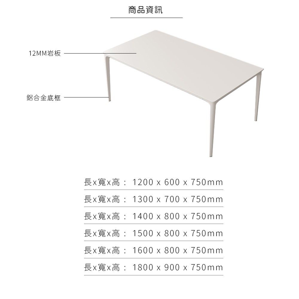 特爾4.6尺岩板餐桌