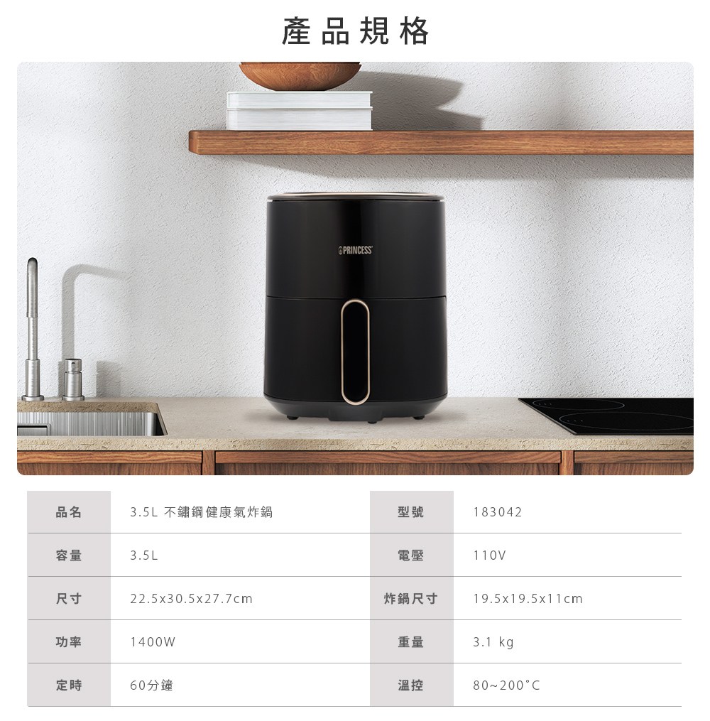 PRINCESS 3.5L數位健康氣炸鍋 183042 原廠