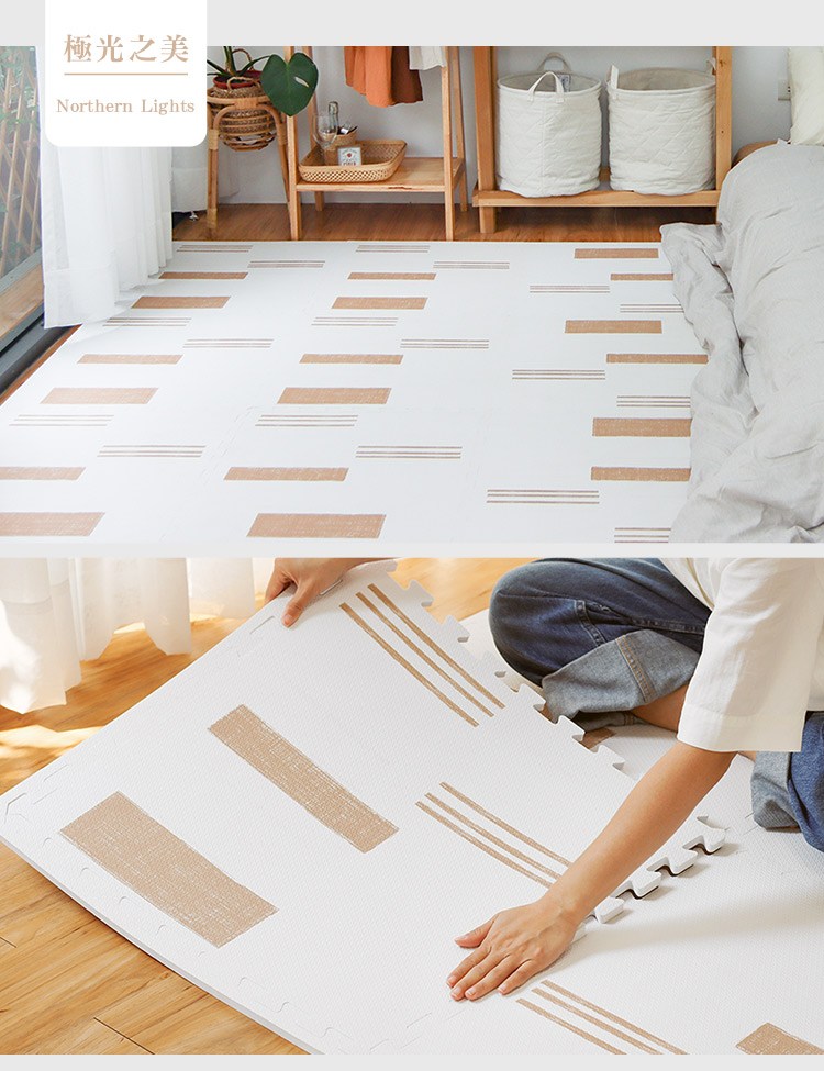 Playzu 台灣製環保無毒歐美設計北歐風防水巧拼地墊58cm(6片組)極光之美(金棕)