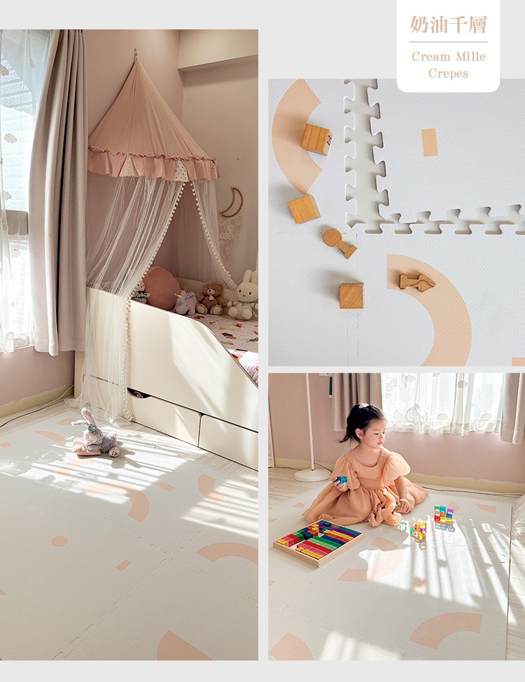 融合了現代感和抽象美學的「幾何系列」巧拼地墊,以多樣化的不規則圖案組成,表達出父母多元的生活方式和孩子們獨特的遊戲觀;其極簡設計與實用功能完美結合,提供柔軟又安全的遊戲空間,同時兼具時尚裝飾感,與家居搭配無縫,為家庭帶來樂趣與安心感。