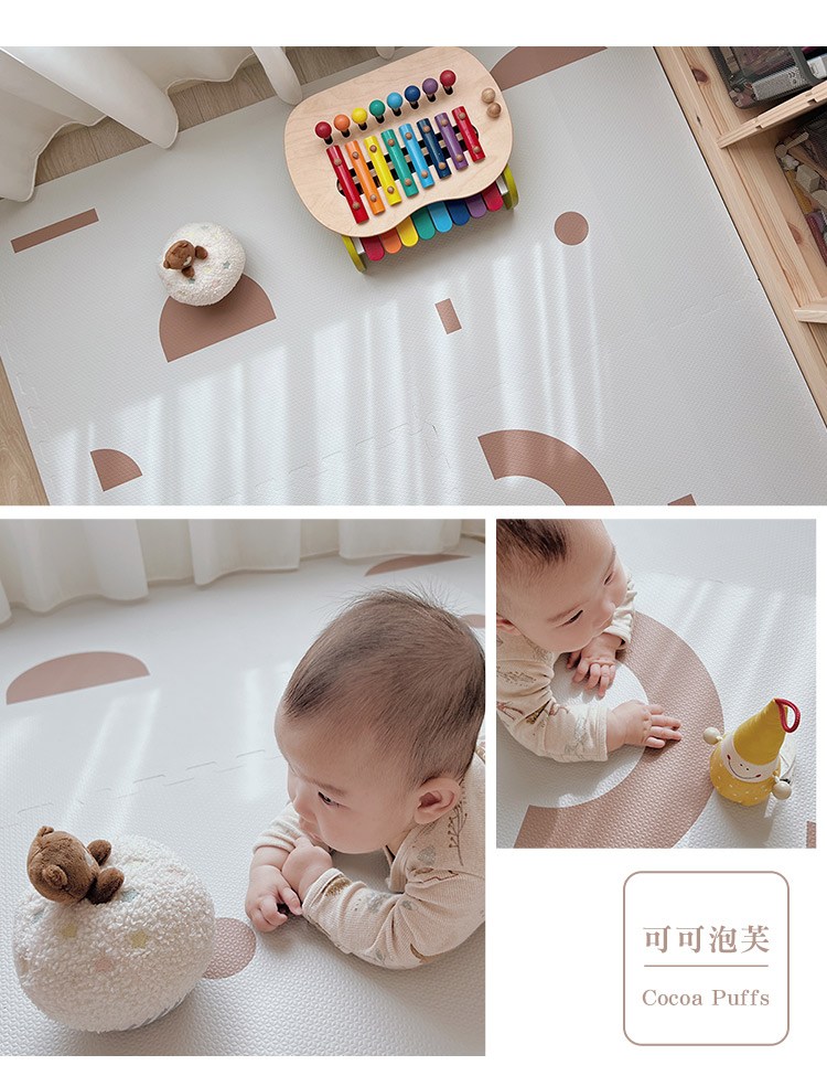 融合了現代感和抽象美學的「幾何系列」巧拼地墊,以多樣化的不規則圖案組成,表達出父母多元的生活方式和孩子們獨特的遊戲觀;其極簡設計與實用功能完美結合,提供柔軟又安全的遊戲空間,同時兼具時尚裝飾感,與家居搭配無縫,為家庭帶來樂趣與安心感。