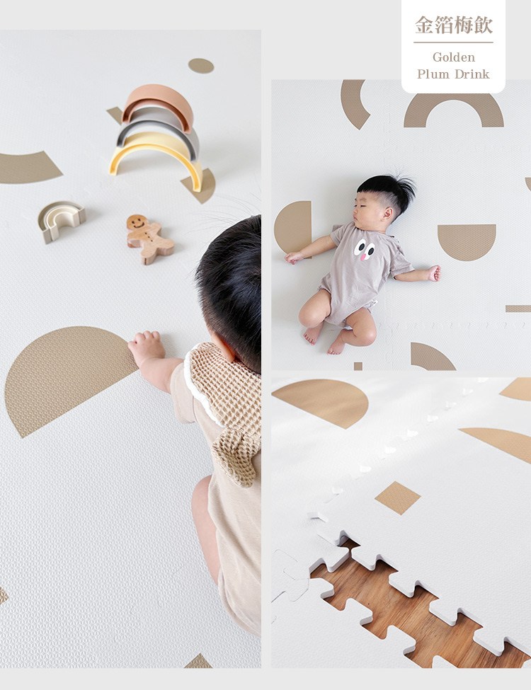 融合了現代感和抽象美學的「幾何系列」巧拼地墊,以多樣化的不規則圖案組成,表達出父母多元的生活方式和孩子們獨特的遊戲觀;其極簡設計與實用功能完美結合,提供柔軟又安全的遊戲空間,同時兼具時尚裝飾感,與家居搭配無縫,為家庭帶來樂趣與安心感。