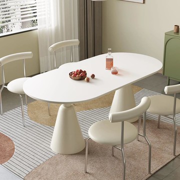 奶油風純白巖板餐桌家用輕奢現代簡約小戶型法式橢圓形餐桌椅組合