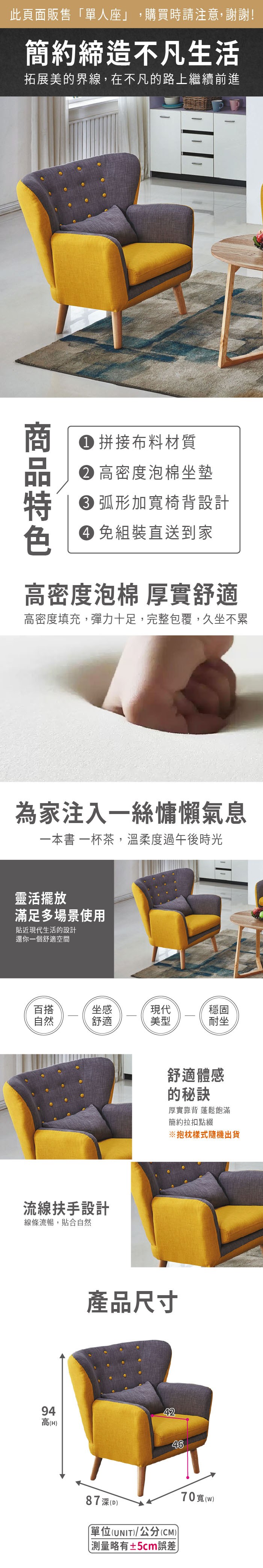 IHouse-薩泰爾 高背強韌耐磨布紋 貓抓皮沙發 1人座跳色抹綠