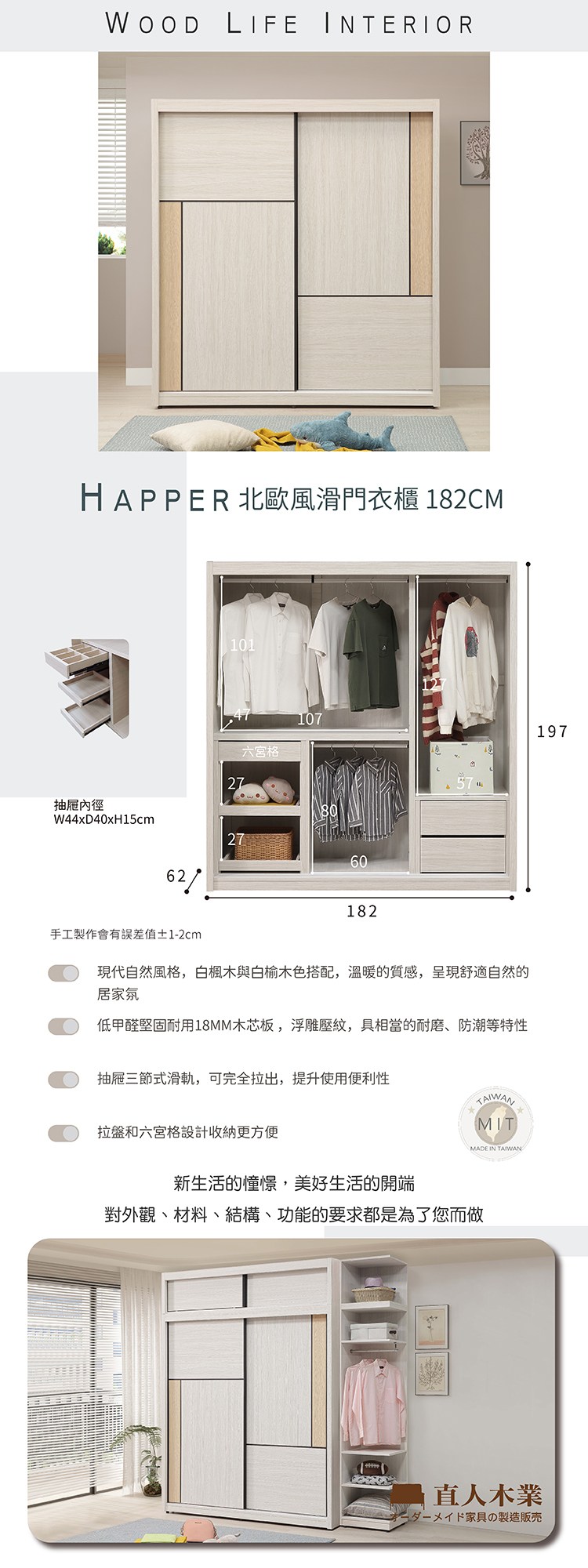 《HOPMA》美背復古三門二抽二格衣櫃 台灣製造 衣櫥 抽屜櫃 衣物收納櫃
