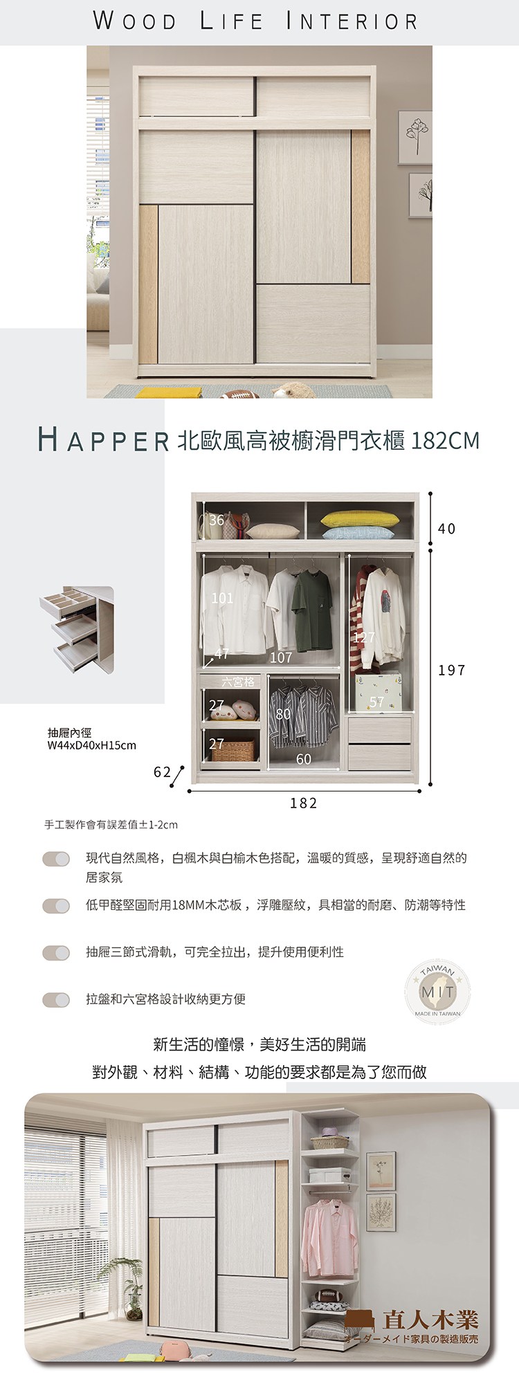 IDEA MIT凡賽4X6尺木質收納抽屜滑門衣櫃/衣櫥(3色任選)