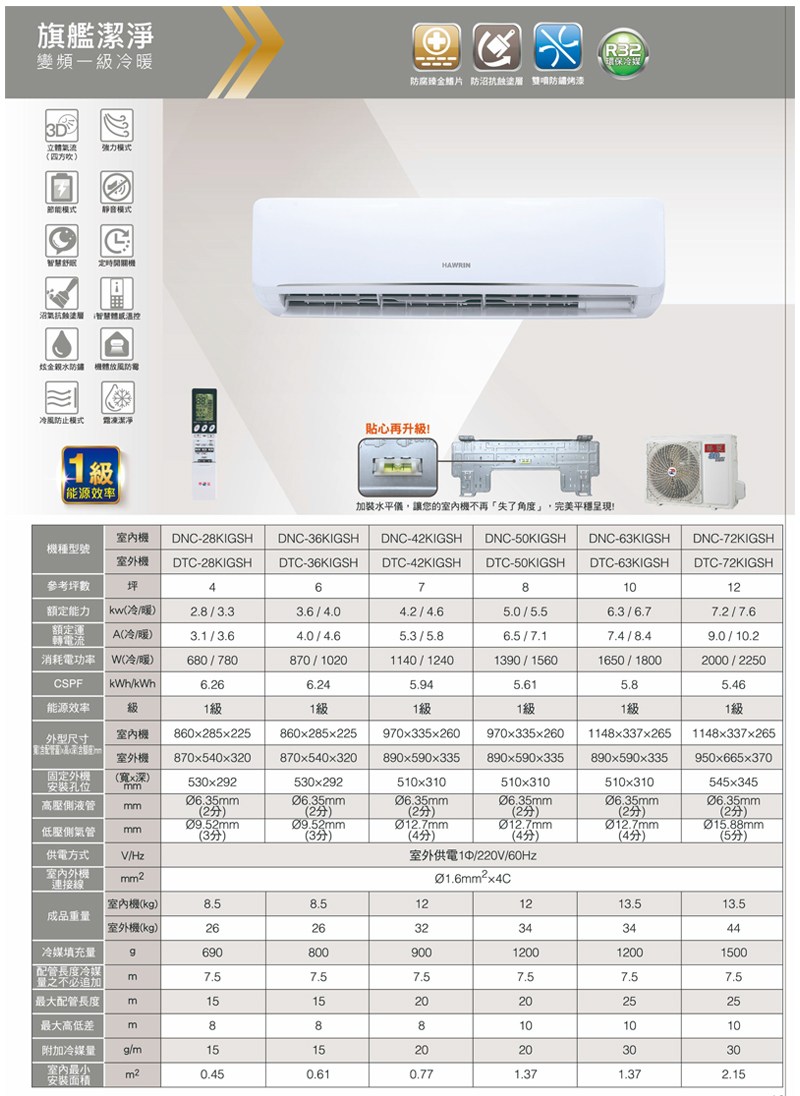 (含標準安裝)華菱變頻冷暖R32分離式冷氣10坪BHI-63KIGSH/BHO-63KIGSH