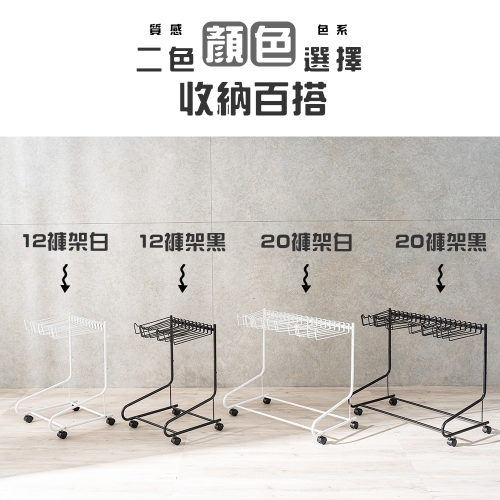 【拜爾家居】Pro+褲子收納架 20支吊掛架 黑色 台灣製造 收納褲架 褲架 可移動收納
