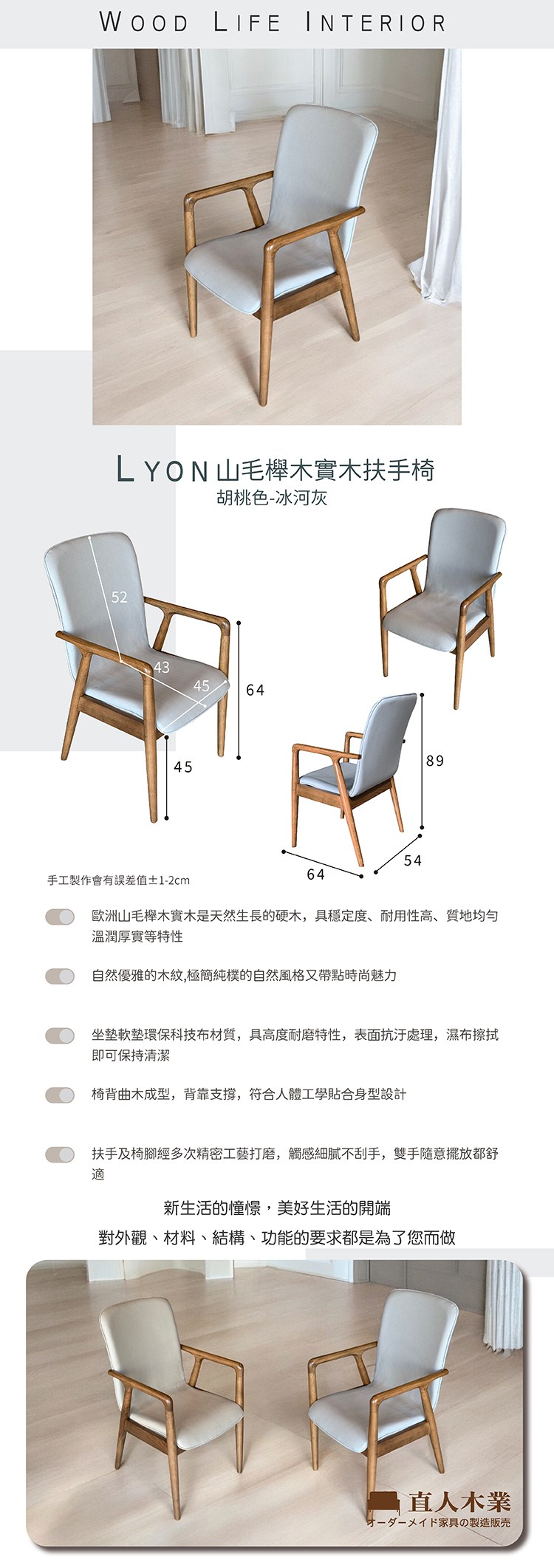 ASSARI-宮崎扶手實木餐椅(寬52x高77cm)