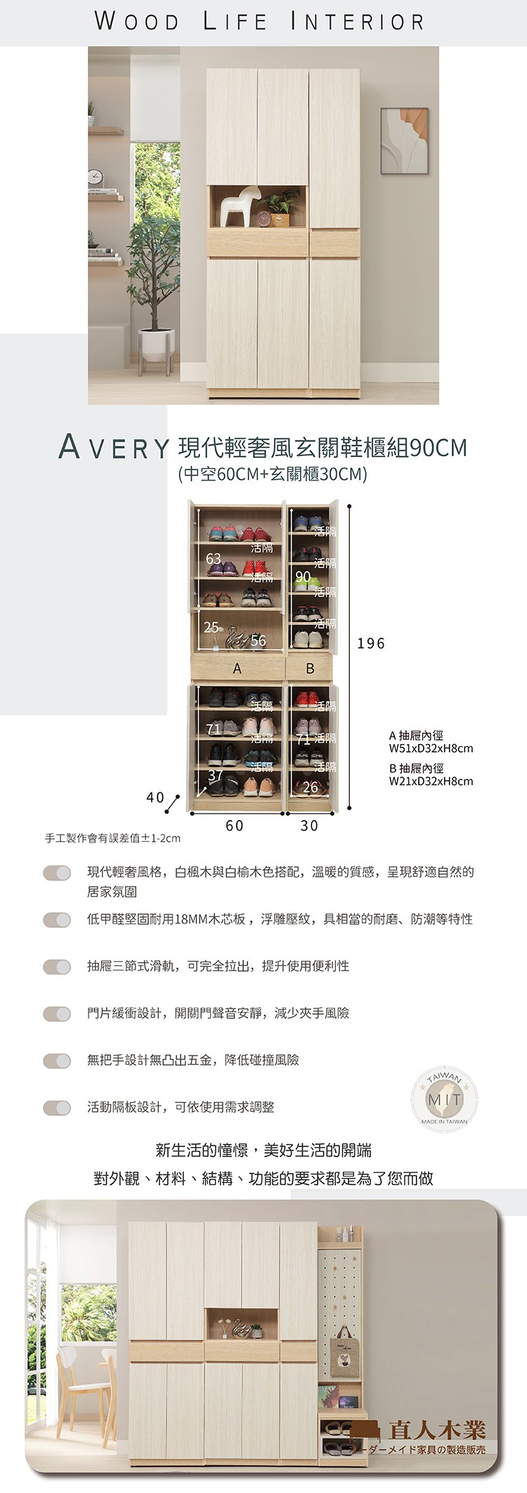 【歐風別館】誠品白色+楓木雙色玄關吊衣鞋櫃【基隆至台中免運費】