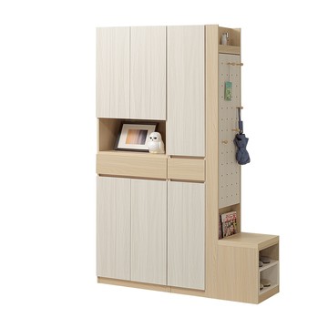 hoi!林氏木業北歐簡約拼色三門鞋櫃1.2M UT1N 原木色+白色