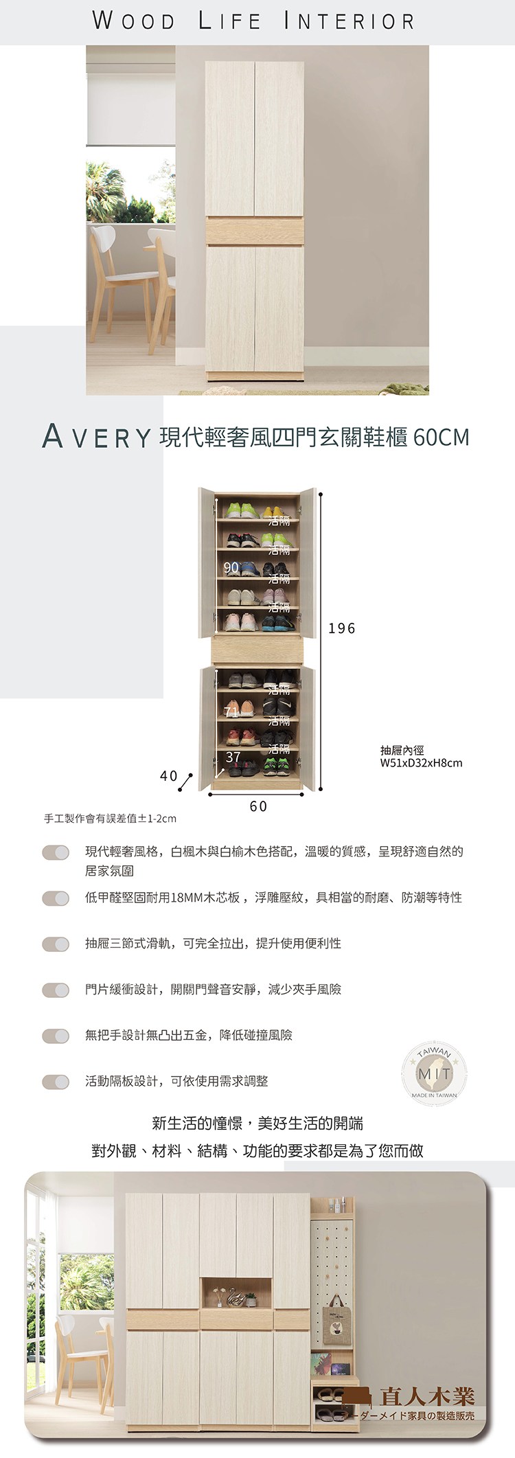 直人木業-卓越現代風百葉鋁門通風鞋櫃121公分