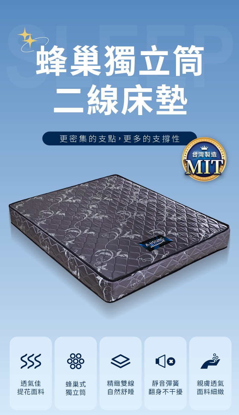 【IDEA】蜂巢獨立筒透氣緹花面二線6尺床墊(雙人加大)