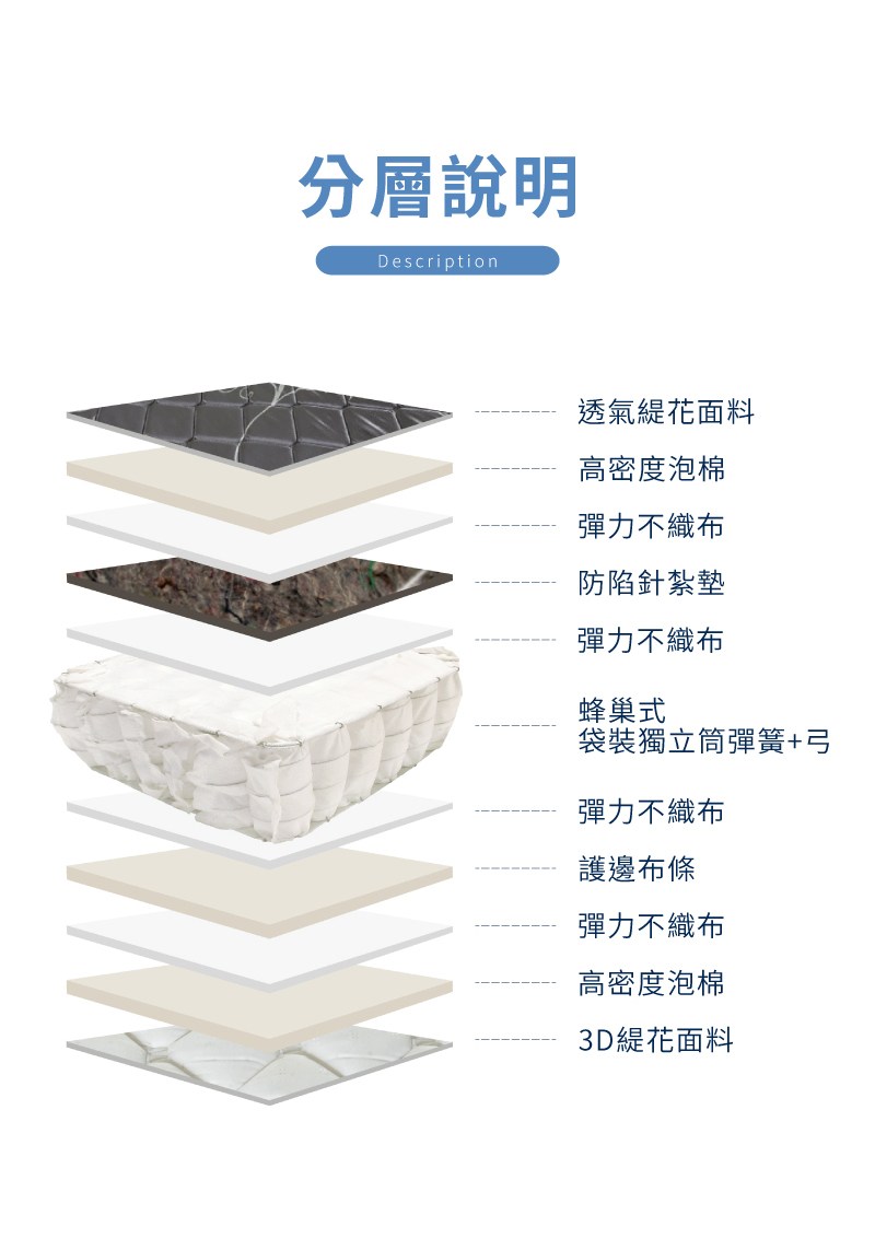 《新之森林》雅典多支撐蜂巢款獨立筒床墊-雙人加大6x6.2尺
