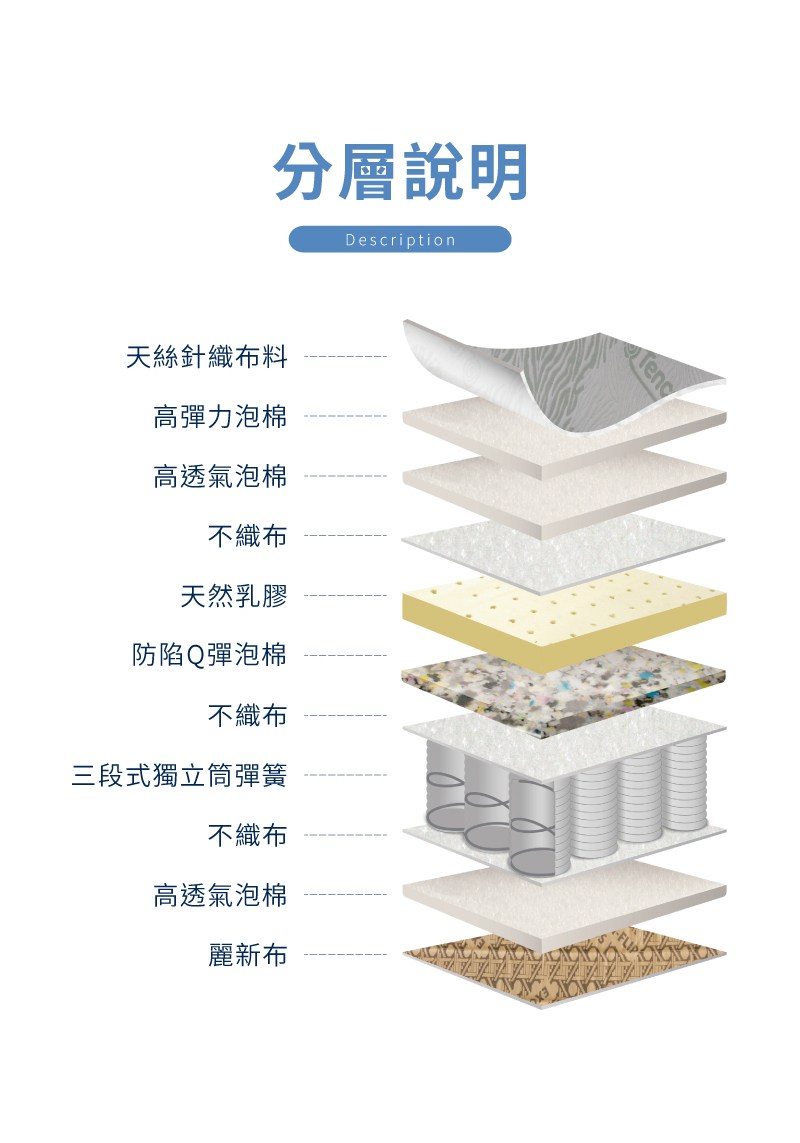 [愛傢舒眠館]催眠絲 - 天絲棉三線乳膠獨立筒床墊
