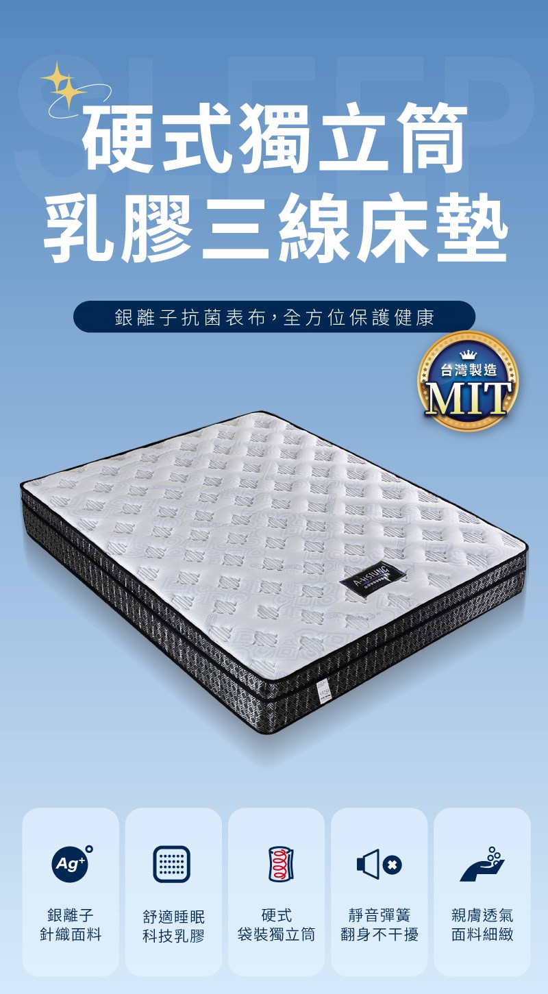 Boden-皇爵天絲乳膠護背硬式三線獨立筒床墊(適中偏硬)-3尺標準單人