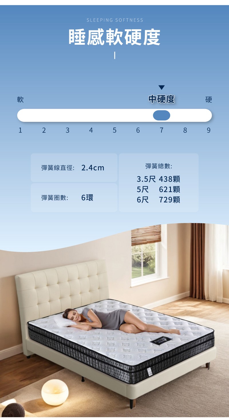 【KIKY】月牙灣蓆面記憶舒層彈簧床墊雙人加大6尺