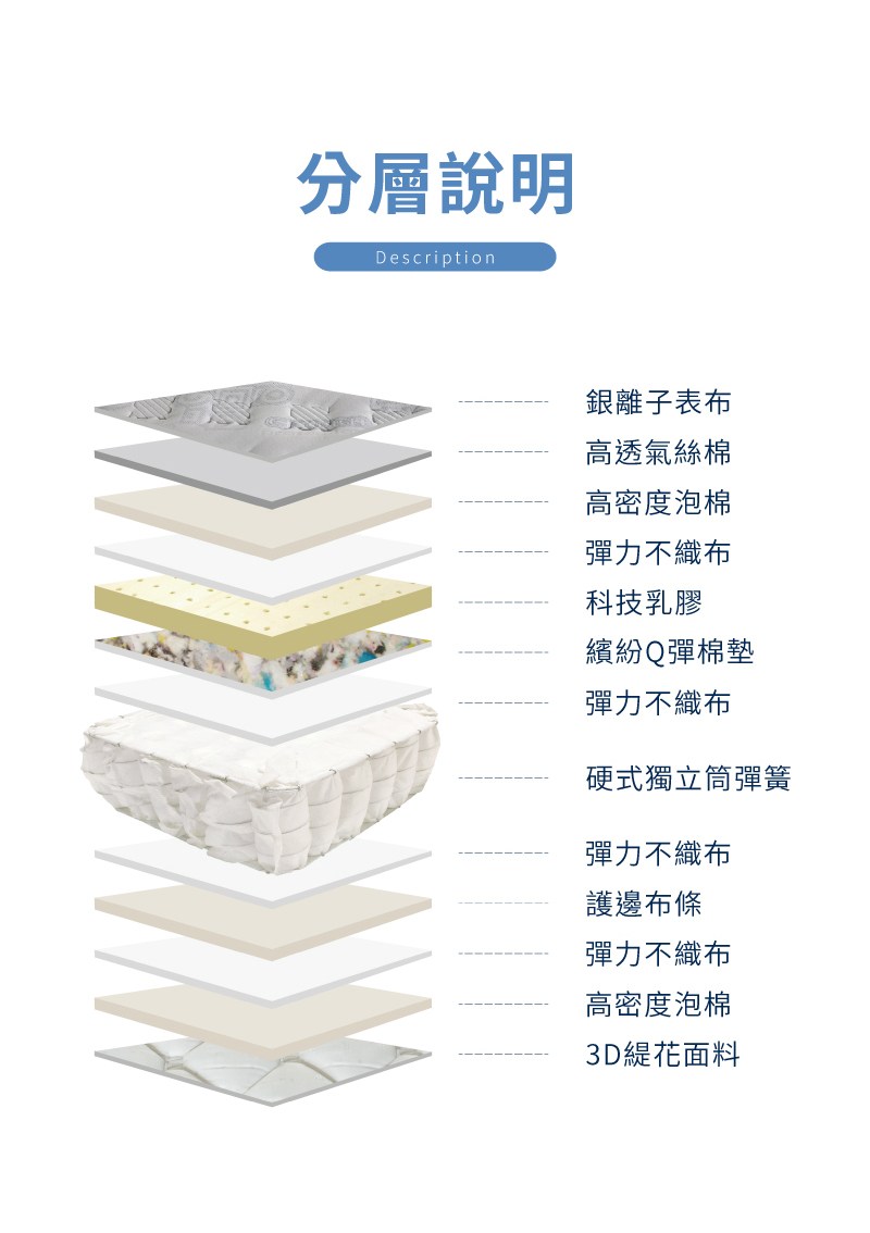 比佛利涼感乳膠獨立筒床墊3562單人加大
