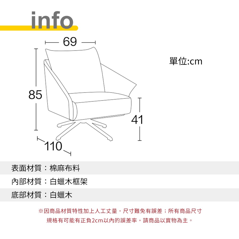 懷特舒適旋轉單人沙發