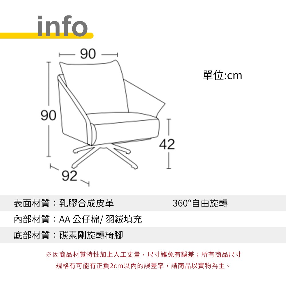 文創集 拿帝纖維皮革可旋轉休閒椅(可360度旋轉)-81x95x100cm免組