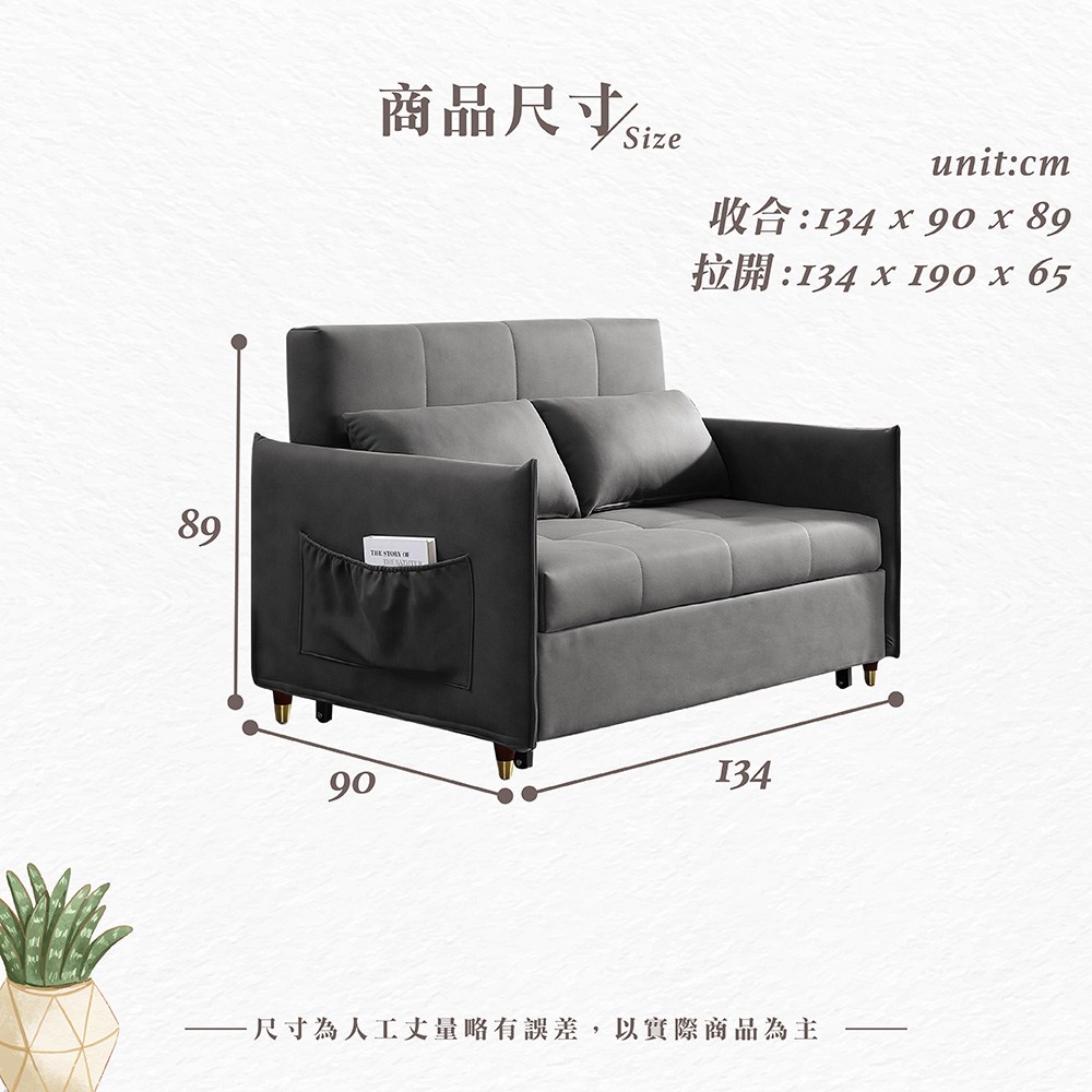 【H&D東稻家居】沙發床 康夫特柔布質感沙發床/2色